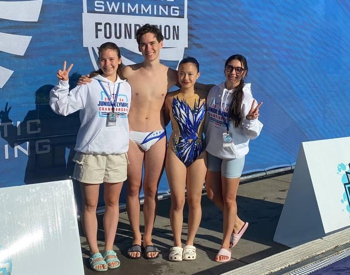 Over the following two years, Blazh competed at the U.S. Junior National Championships and U.S. Junior Olympic Championships, earning medals in solo, mixed duet, and combo events. At the same time, he also competed for his high school swim team, winning the Massachusetts State Championship in 2023 and finishing as runners-up in 2024.